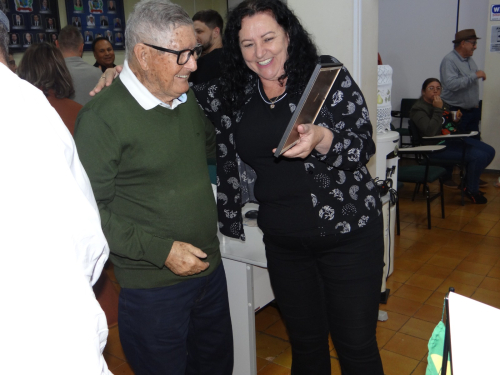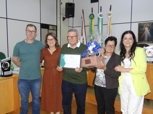 Não tendo mais matérias, a presidente convidou o homenageado da noite, seu Miguelzinho Moser e família, para entrega do quadro e registro do momento de emoção e alegria que significou a sessão para seu Miguel e familiares. A presidente agradeceu a presença de todos os familiares de seu Miguel Moser e agradeceu a presença do movimento de apoio aos produtores de leite e encerrou a sessão às 21:00 hrs.