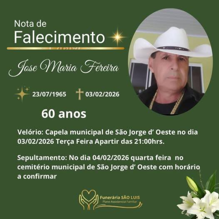 Neste momento de dor, a Câmara de Vereadores se solidariza com os familiares, amigos e todos que conviveram com José Maria Ferreira, desejando conforto e serenidade para enfrentar esta irreparável perda.